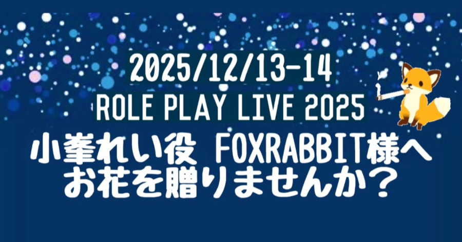 2025.12.13-14 開催 「ROLE PLAY LIVE 2025」 へ御出演 FOXRABBIT様 ( 小峯 れい役 )へのフラワースタンド企画です。