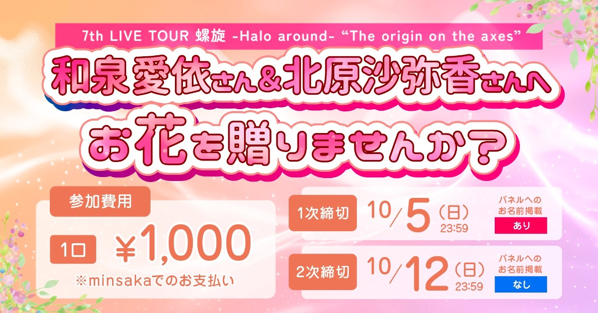 シャニマス7th螺旋 和泉愛依さんと北原沙弥香さんにお花を贈りませんか?