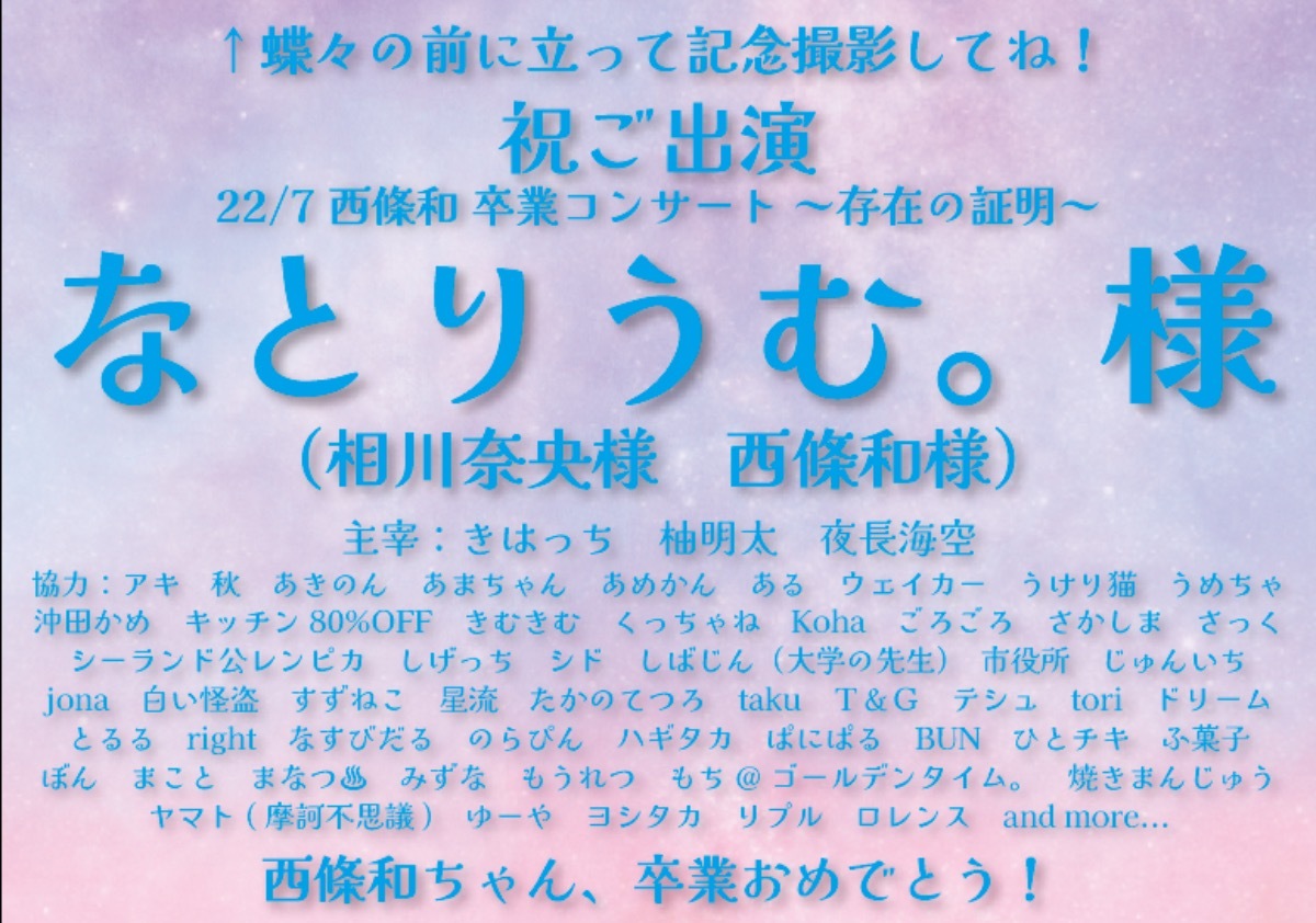 「西條和 卒業コンサート ~存在の証明~」に🦋なごうた🎼フラスタを贈りませんか💐?