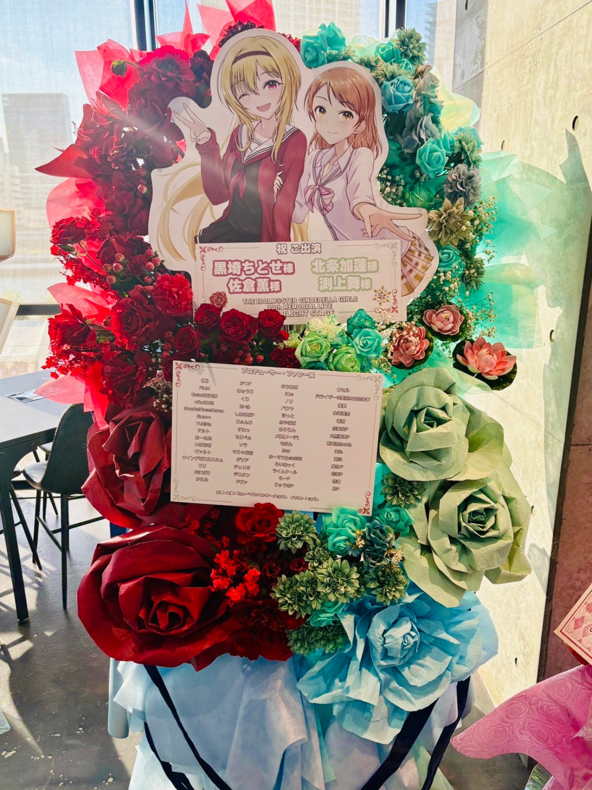 9/6・7に開催されましたデレステ10周年千秋楽公演にて無事フラワースタンドが設置されました
