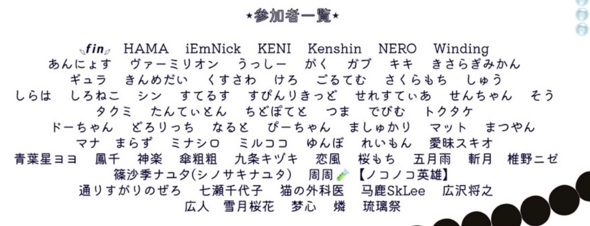 皆様にご回答いただいたお名前を記載しておりますので、ご確認のほどよろしくお願いいたします。