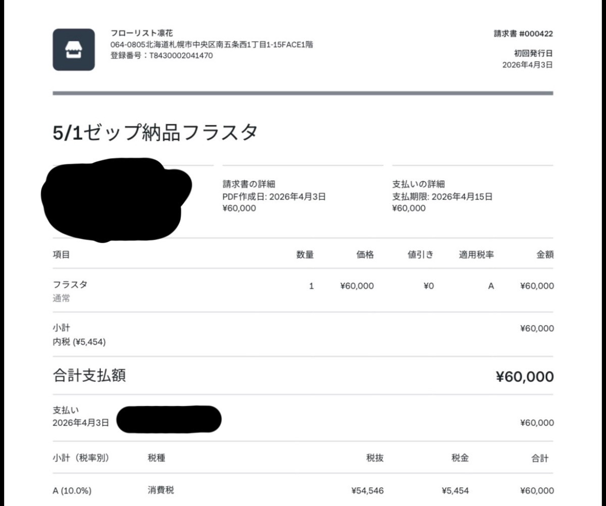 凛花様へフラスタの料金の支払いが実は完了しておりました〜👏👏👏👏(遅い←)