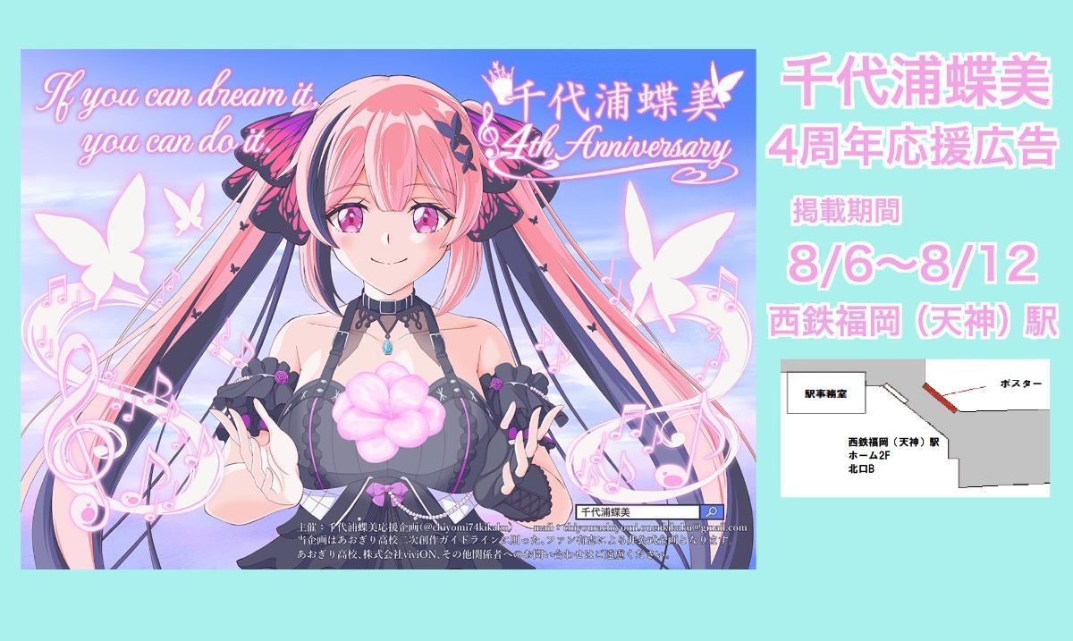 皆様のおかげで千代浦蝶美さんの応援広告ポスターを掲出出来ました。