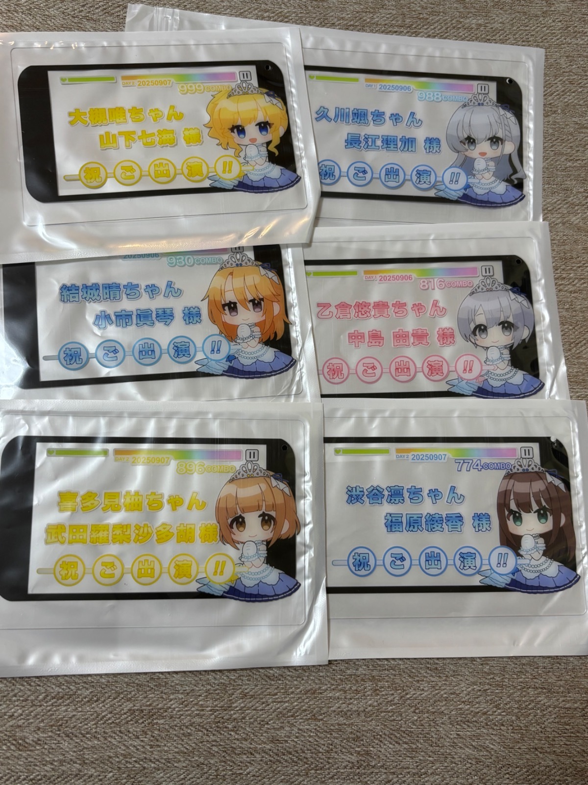 また、デレステ画面風の祝ご出演のメッセージボードは別の印刷会社様にご依頼し完成しております。