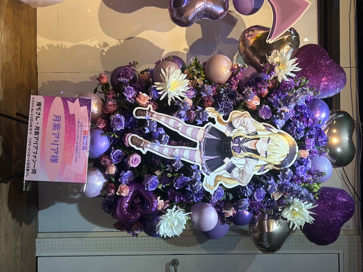 1stシングルのアリアの最強しもべ計画をイメージしたたくさんのこうもりくんのお花とハートのバルーンで虜になってしまうようにお花屋さんに依頼させていただきました。