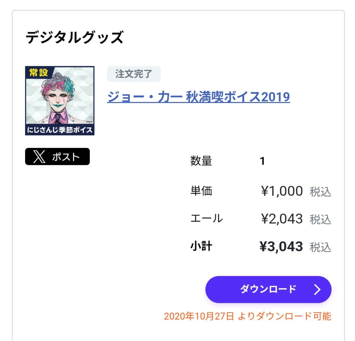 今回の企画で発生した余剰金¥2,043は、デジタルグッズにてご本人様へ還元いたしました。