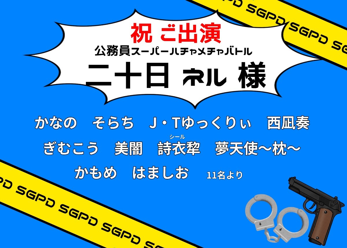 公務員スーパーハチャメチャバトル2026に鳥野ぎん役こるぺん様にお花を贈りませんか?(本募集はX垢にて募集中)