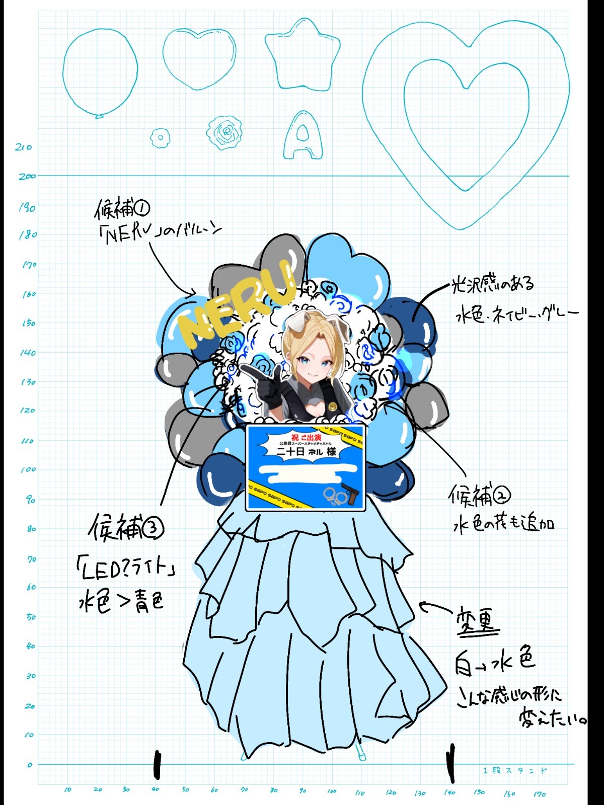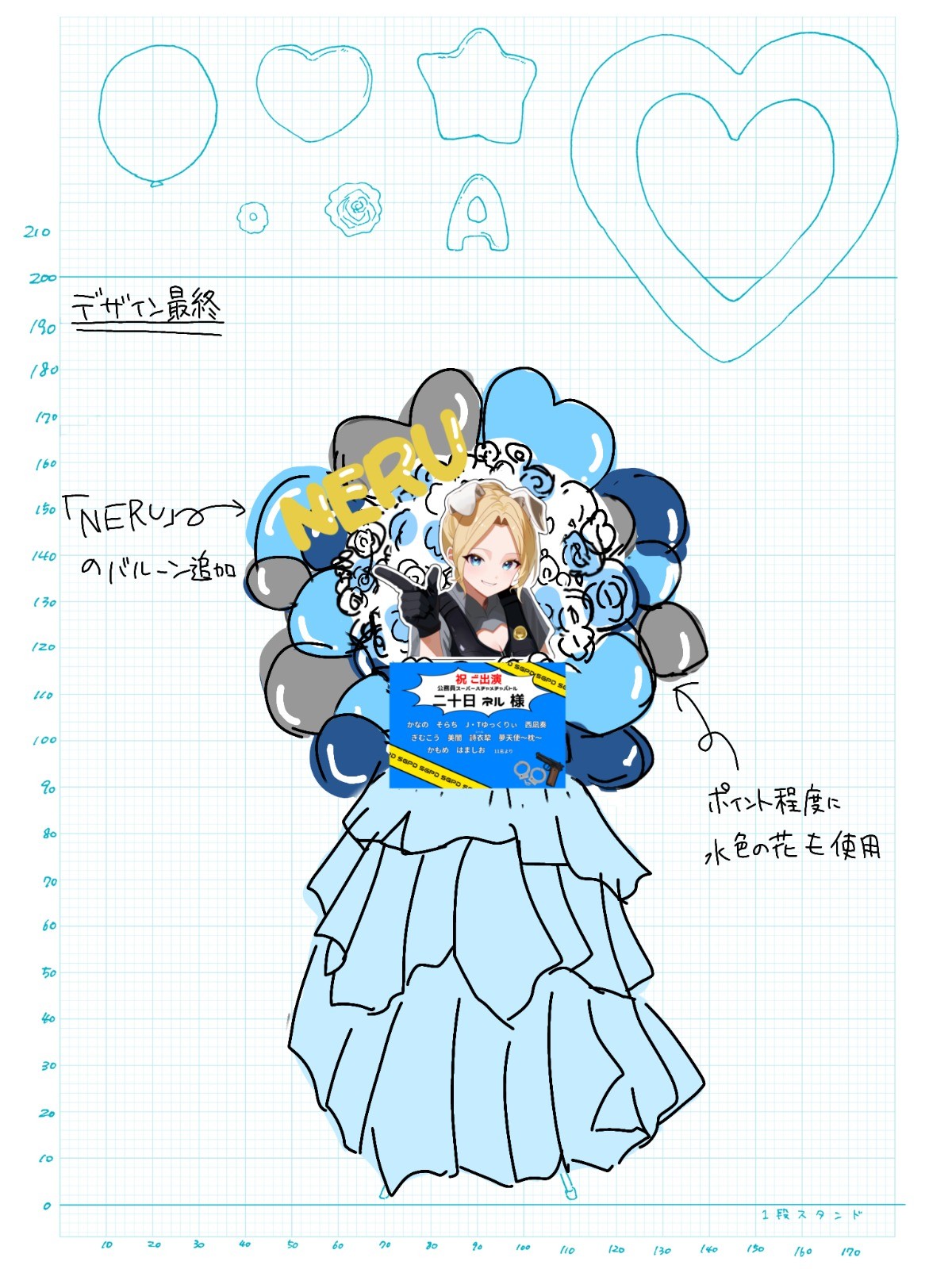 追加装飾として、NERUの文字バルーンと水色の花を追加致しました。