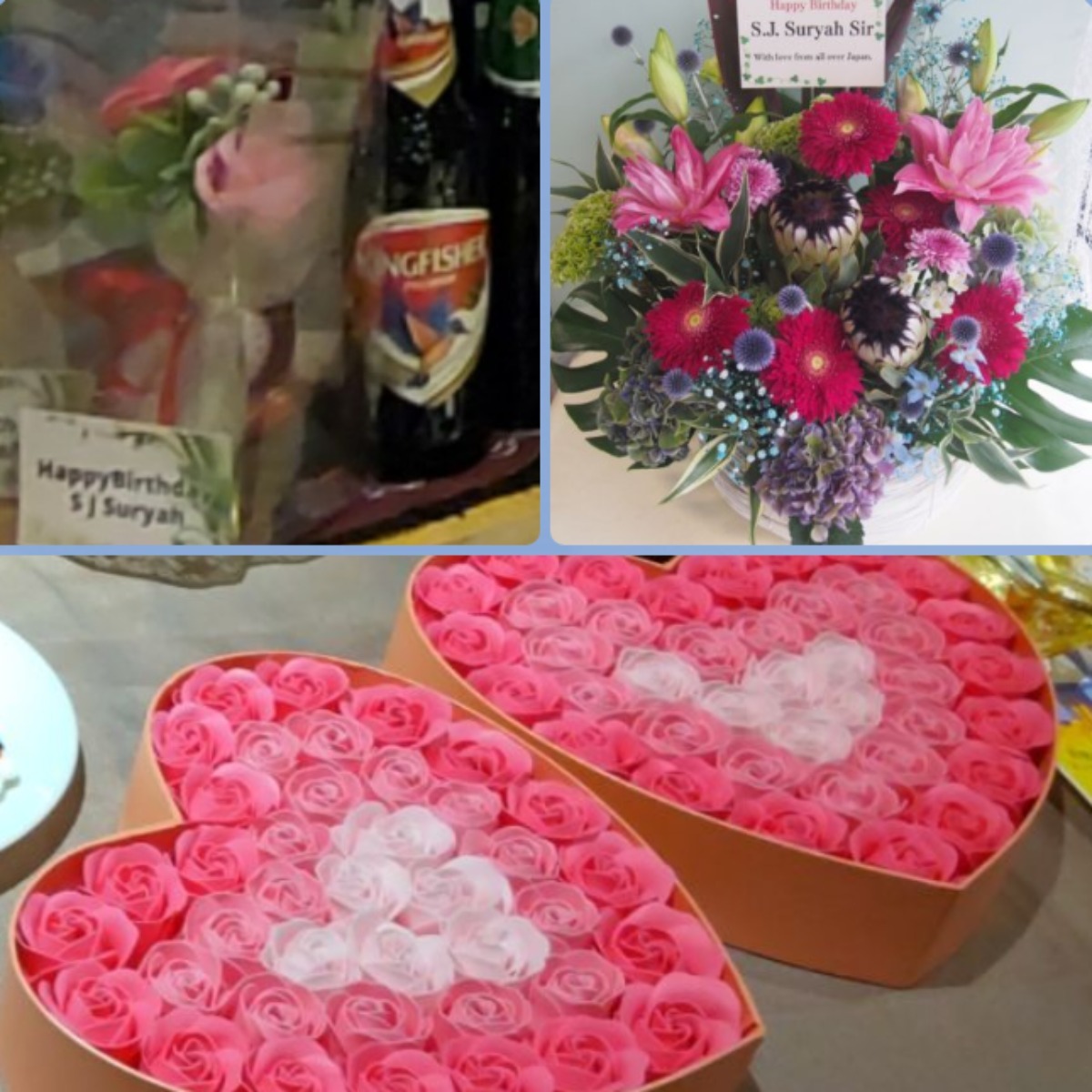 大変遅くなりすみません。みなさまのおかげで7月20日S J スーリヤーさんのお誕生日には絵文字イメージのソープフラワーブーケ(テーブルセット写真がなくてすみません)、祭壇にlikイメージのソープフラワーBOXとSakaseruさまでお願いした御本人イメージのアレンジメントが飾られました。