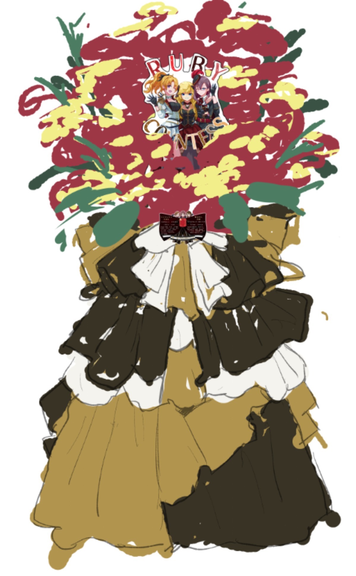 下部ドレスは金黒白で上の花を目立たせつつ自身も目立たせるようにしました。
