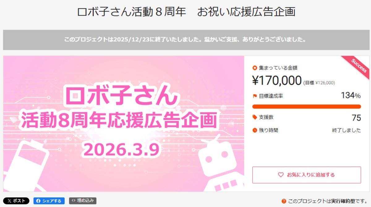 ロボ子さん8周年応援広告 クラウドファンディング企画達成!!