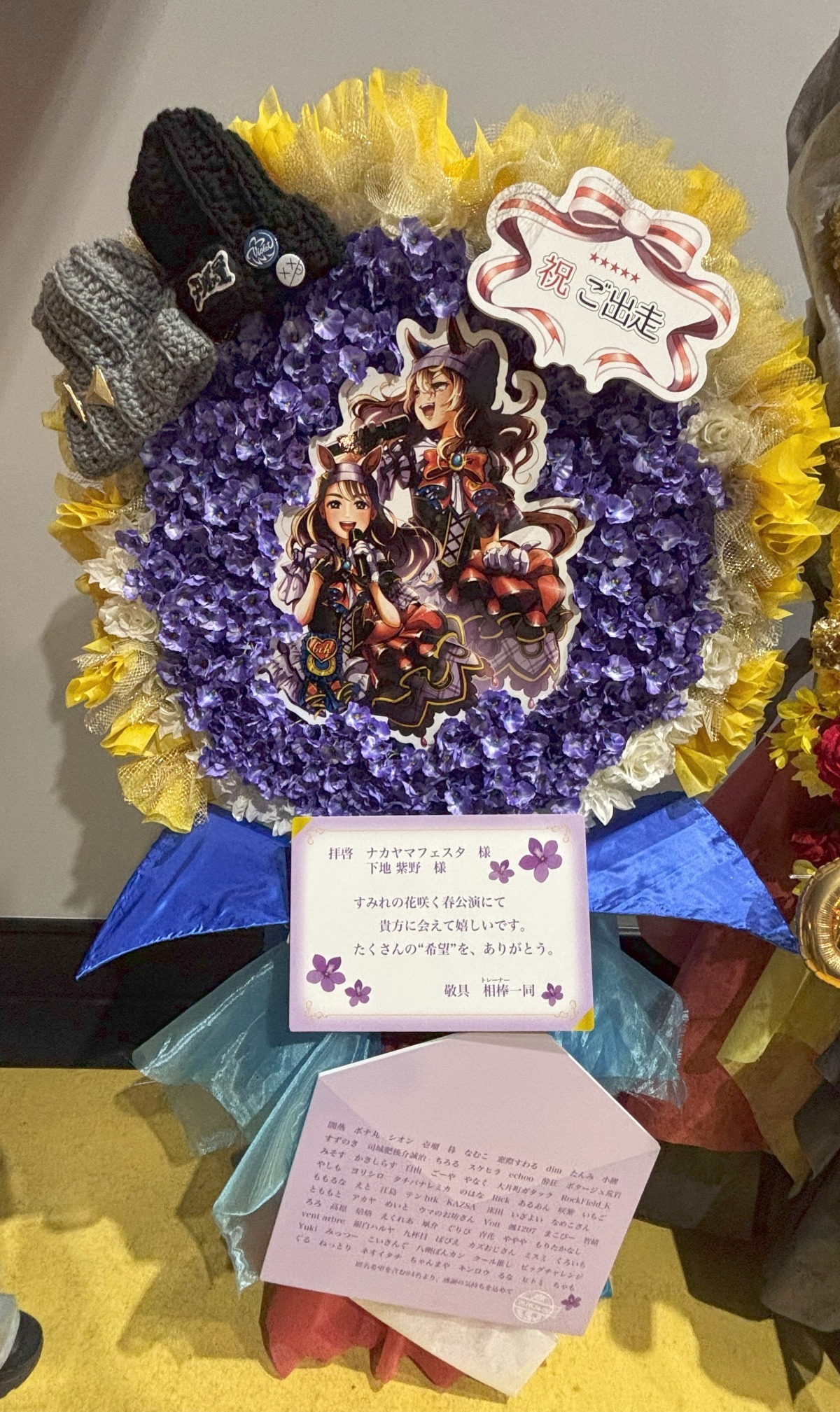 この度はウマ娘6th春公演_ナカヤマフェスタ役 下地紫野様宛のフラワースタンド企画へご協賛くださいまして誠にありがとうございます。