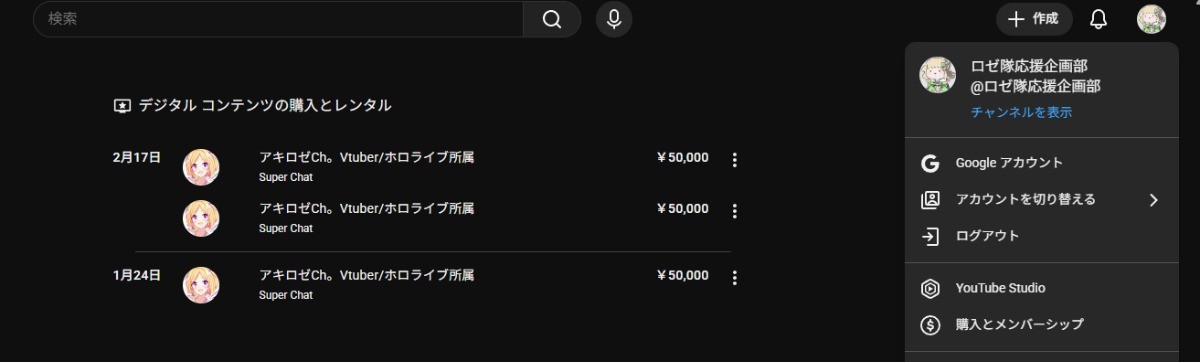 計15万円をアキ・ローゼンタールさんへスーパーチャットで還元させて頂きました。