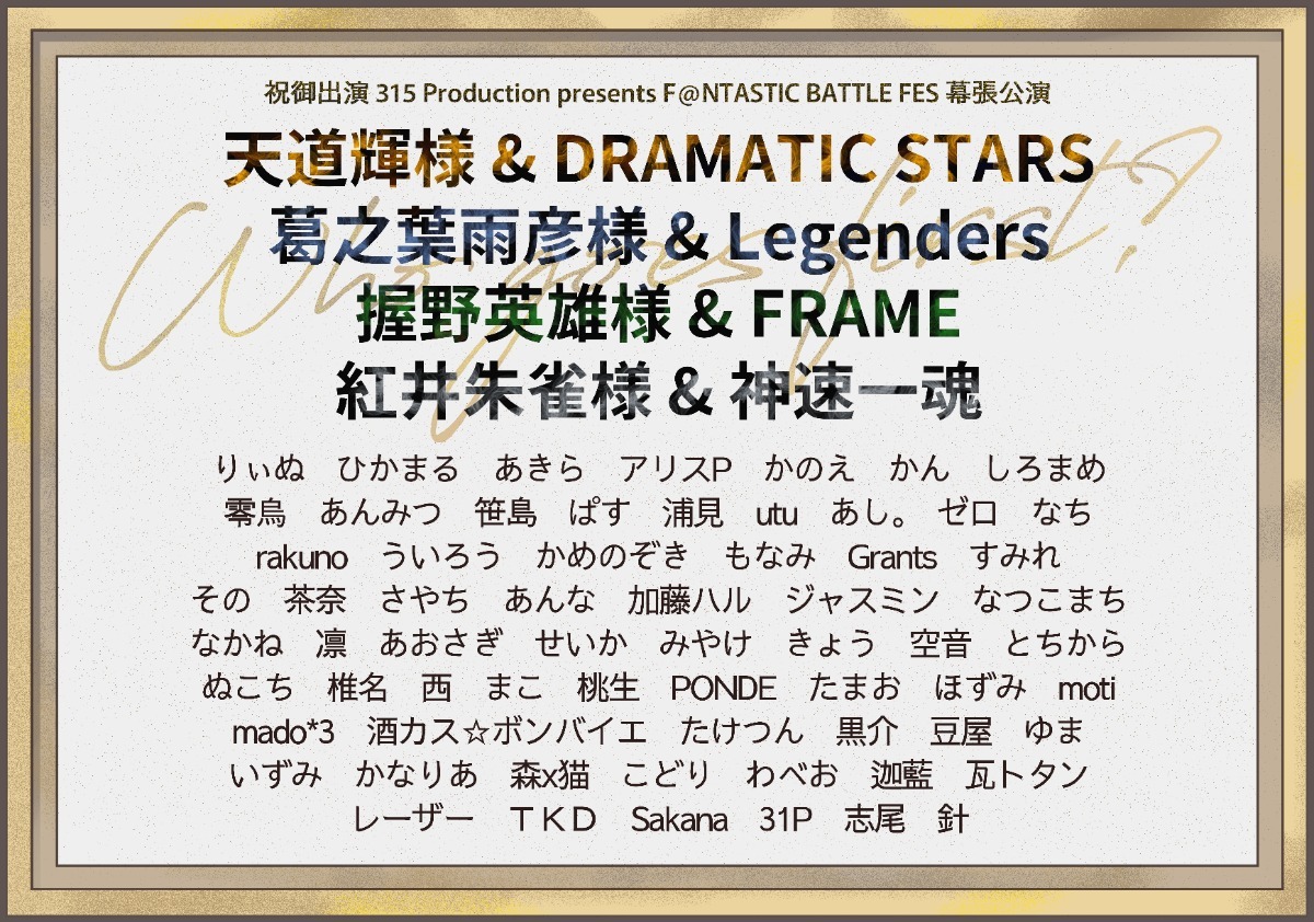 「【SideMバトルフェス幕張】四銃士リーダーユニット宛 バトルフラスタ企画」御出資者の皆様へ