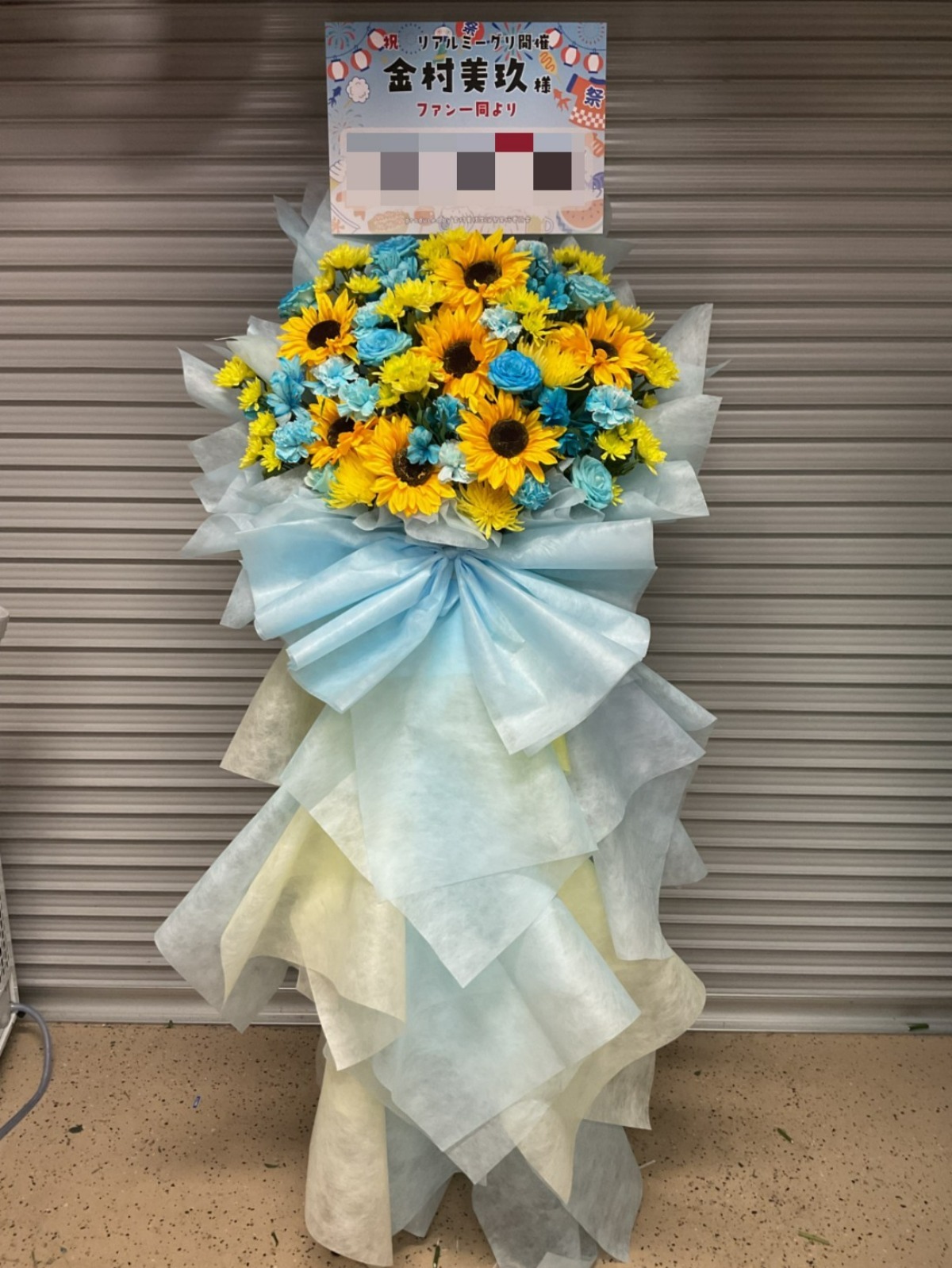金村美玖さんのサイリウムカラー「パステルブルー×イエロー」を基調に、夏らしくヒマワリを用いてご制作いただきました✨