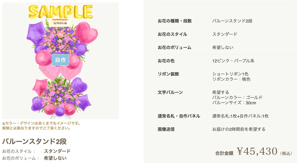 完成したバルーンフラスタは納品前(開催前)に写真を送っていただける予定ですので、届き次第ここで共有させていただきます