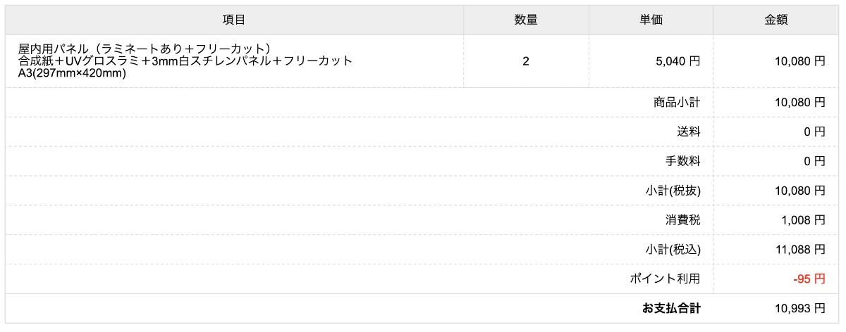 費用計上も前回と同じく1枚分(半額)です