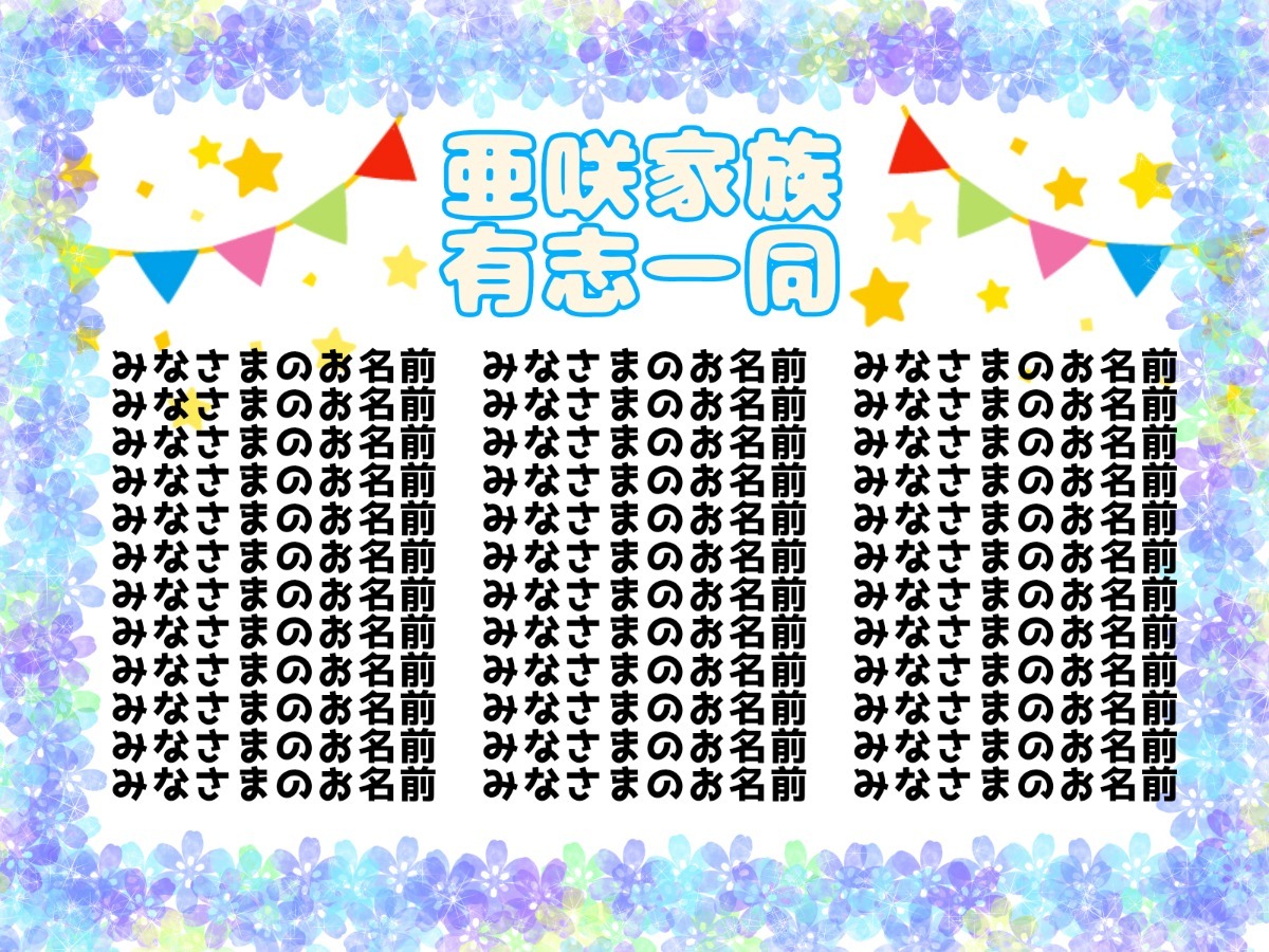 名簿パネルのイメージが完成しました。皆様の大切なお名前をこちらに記載させていただきます。