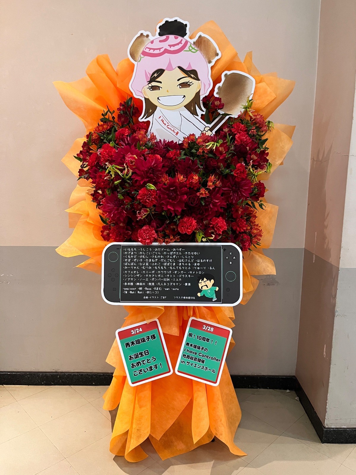 28日サイエンスホールにて、マシュマロを焼く瑠璃子さんのフラスタが無事飾られていました!みなさま、ご協力ありがとうございました!