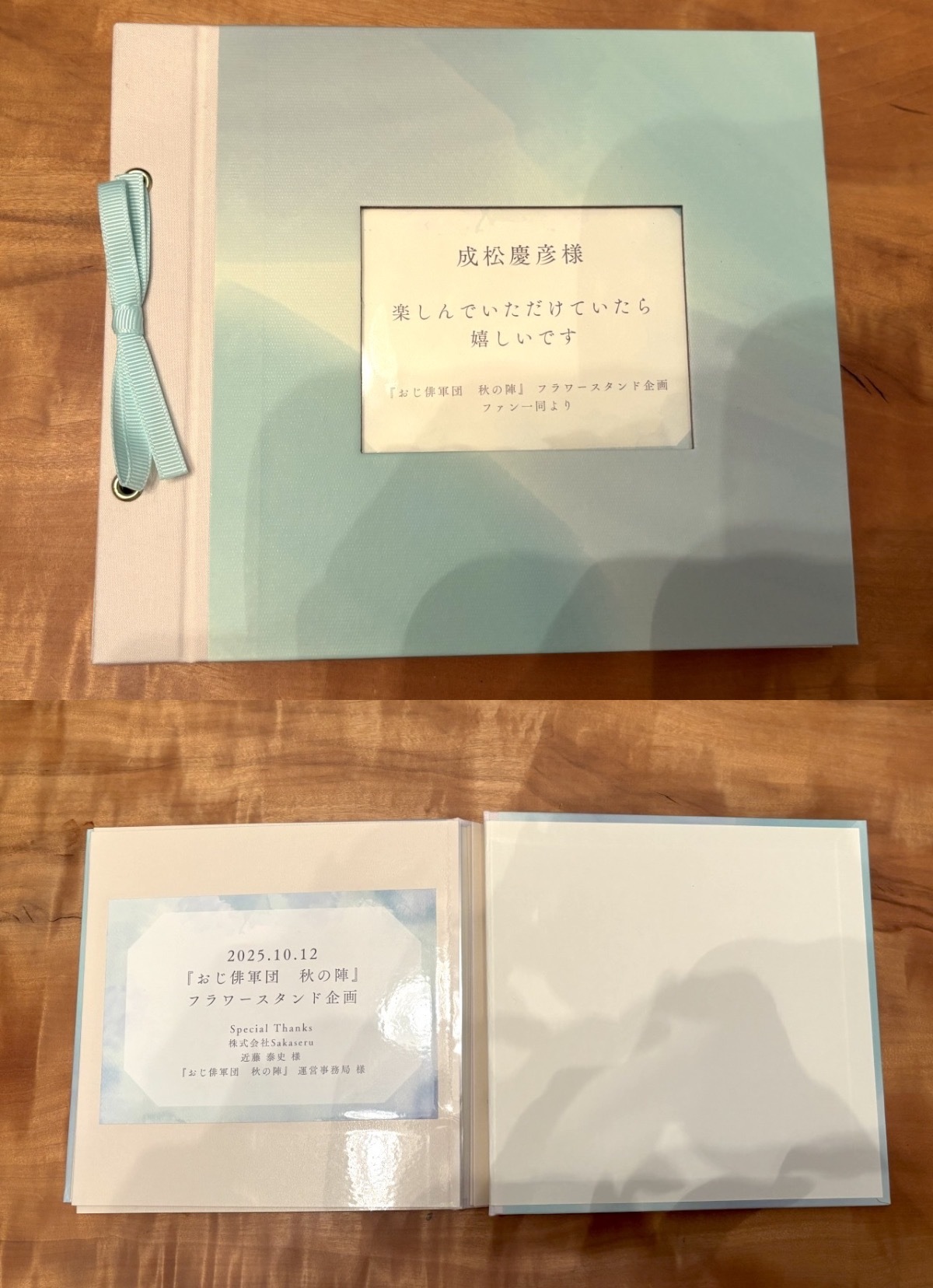 また、本日公演2.5BOX運営へ電話で確認を行い、アルバムはフラスタとは別に「プレゼントボックス」に入れてお渡しできることを確認しました。
