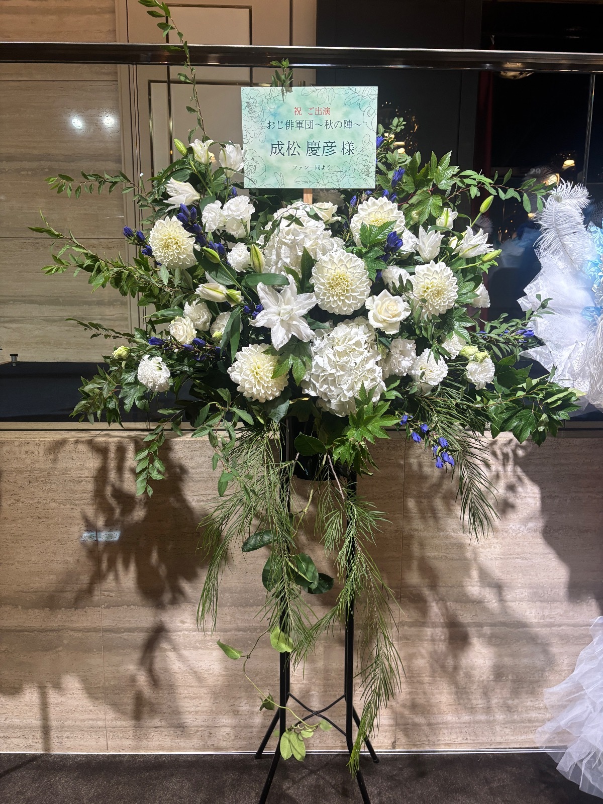 つい先程、会場に届けられたフラスタの写真をデザイナーの近藤様から頂戴いたしました。