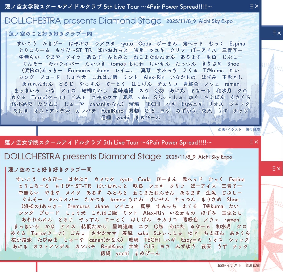 蓮ノ空5thライブ愛知公演にて徒町小鈴さん葉山風花さんへフラスタを贈りませんか?