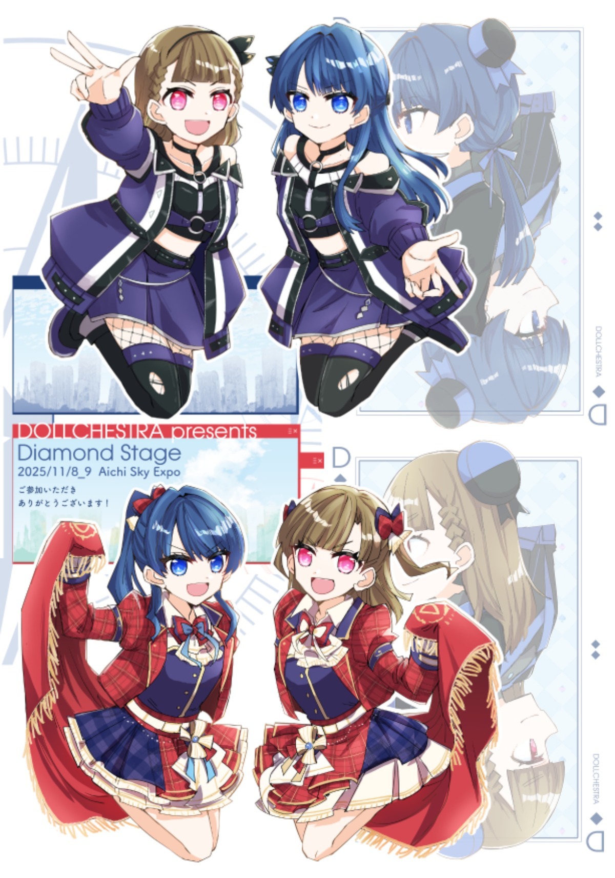 また、今回は1基目のアンペア衣装のDOLLCHESTRAのイラストを公開します。ひとつひとつを切り出しして、お花の中央に設置していただく予定です。