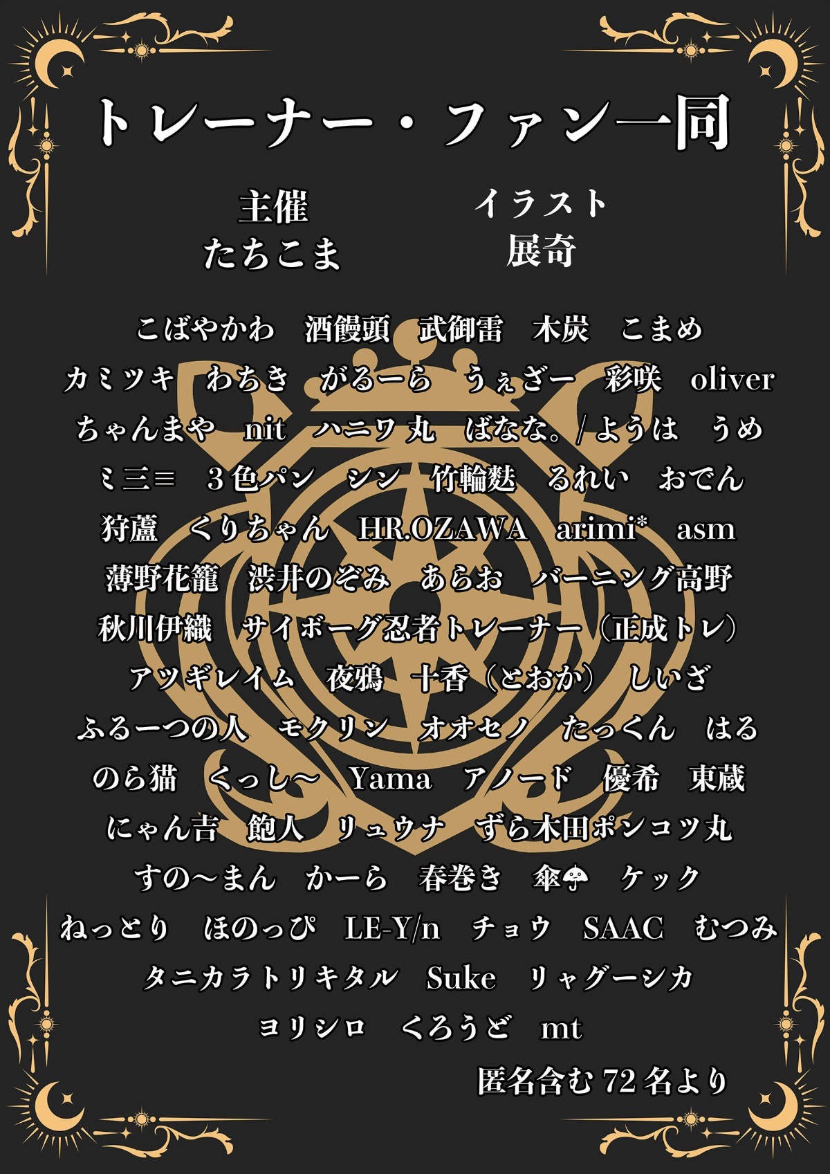 画像のお名前をご確認いただき、掲載名の修正・変更が必要が場合はお手数ですがX(@tckm_pj2501)またはミンサカサイト経由にて主催者へご連絡ください。
