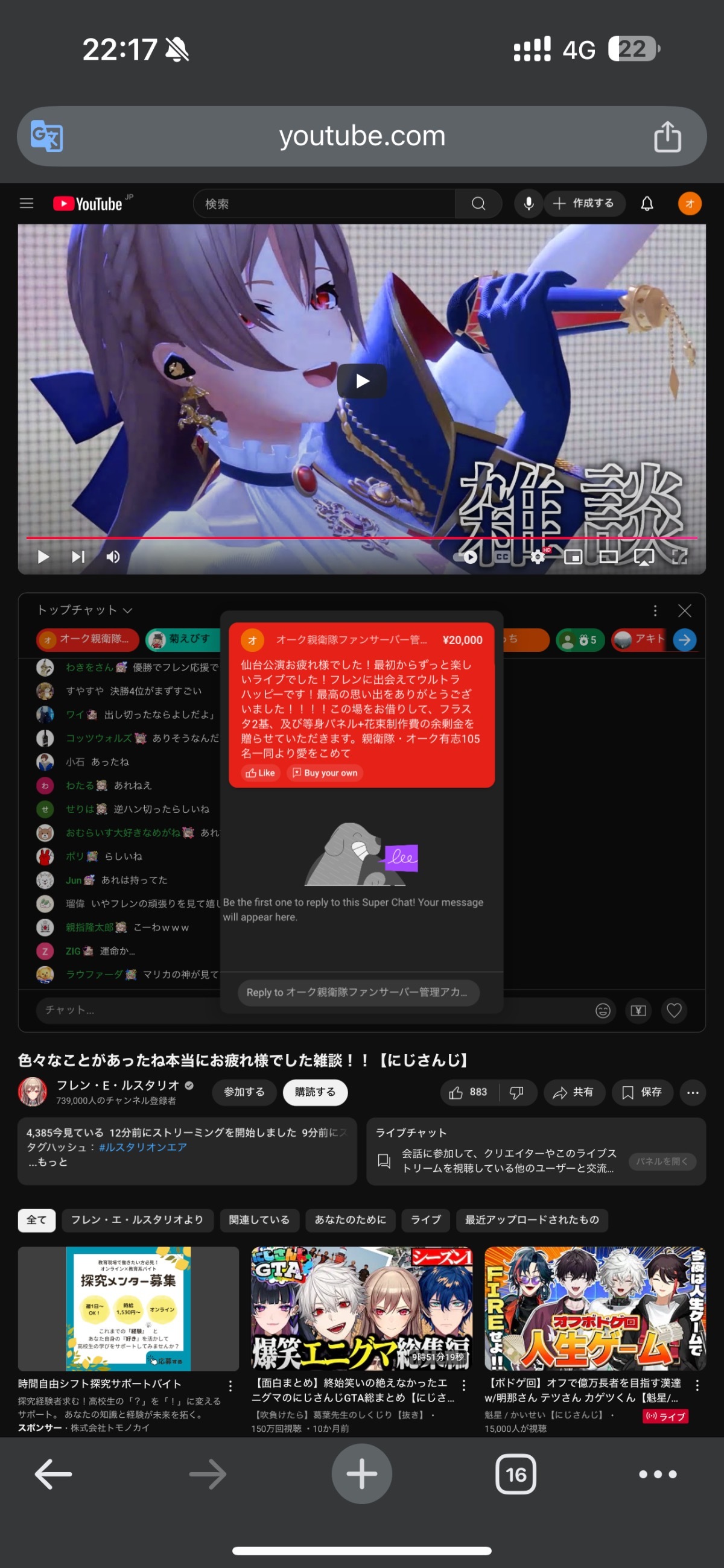 ひとまずにはなりますが大きい金額をスーパーチャットにて送信させて頂いております!