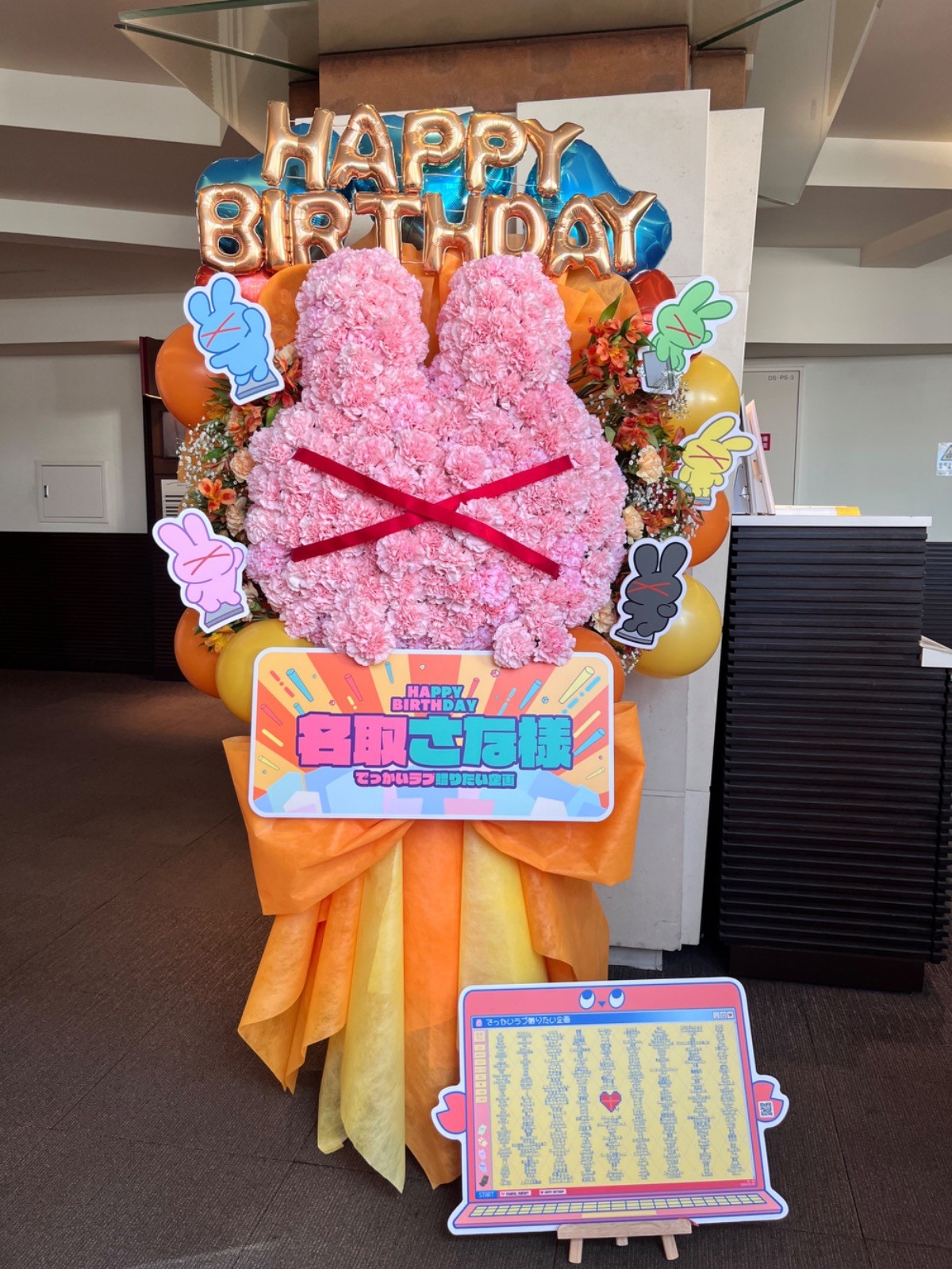 皆様のご協力のお陰ででっかいラブがたくさん詰まったでっかいうさちゃんせんせえのフラスタが完成しました!今年の爆誕も名取さんを大いにお祝いし、楽しみましょう!