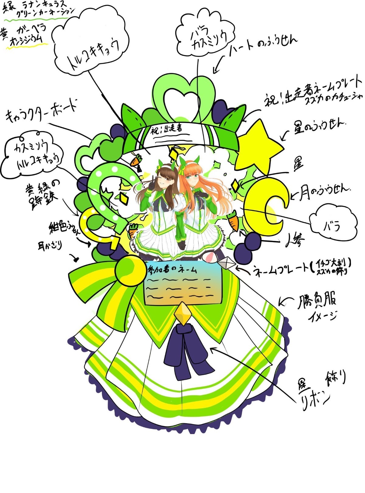 高野麻里佳さんとサイレンススズカのイラスト案が完成しました。