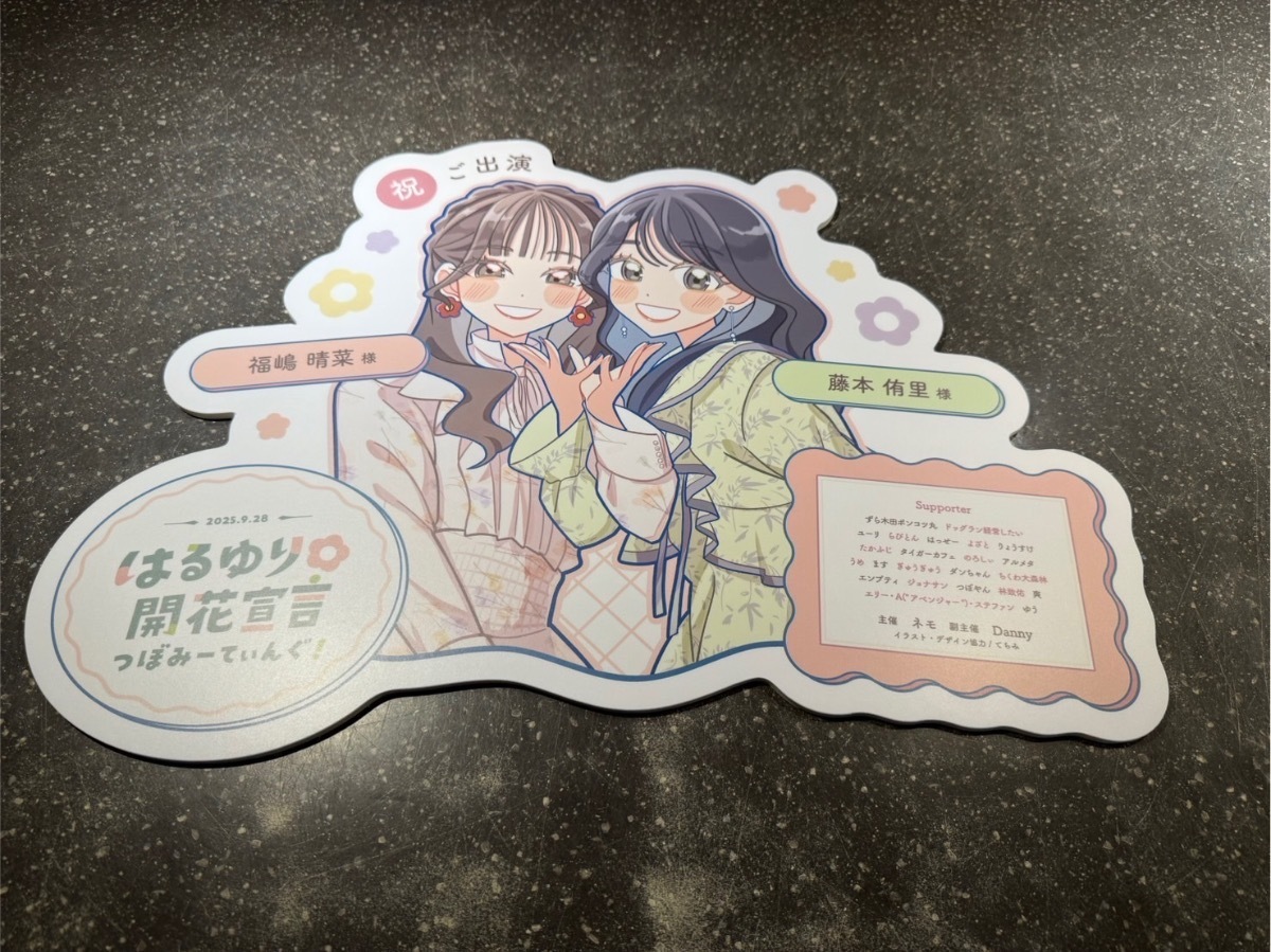フラスタ業者のF2O様の方に、料金の払込と、てちみ様に描いていただいたパネルが届きました。