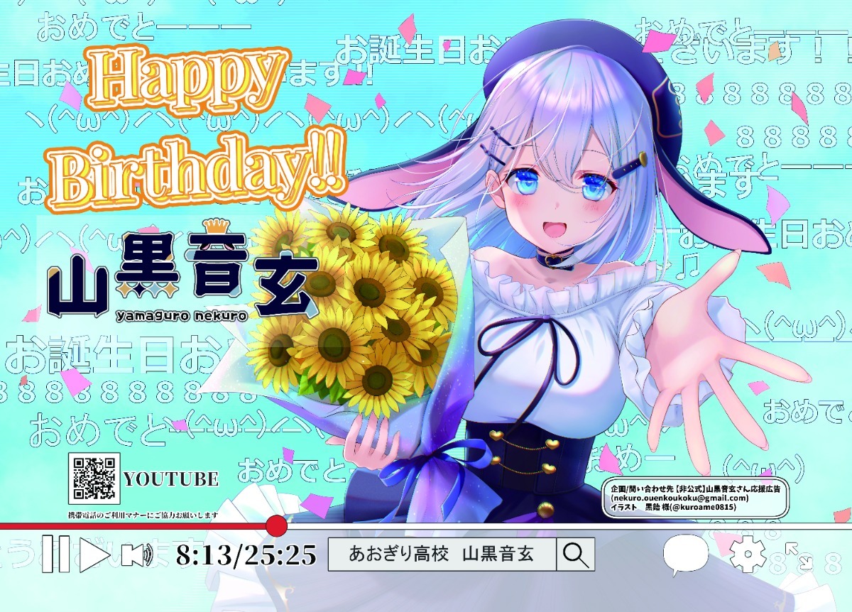あおぎり高校所属の山黒音玄さんのお誕生日を応援広告でお祝いしてみませんか?