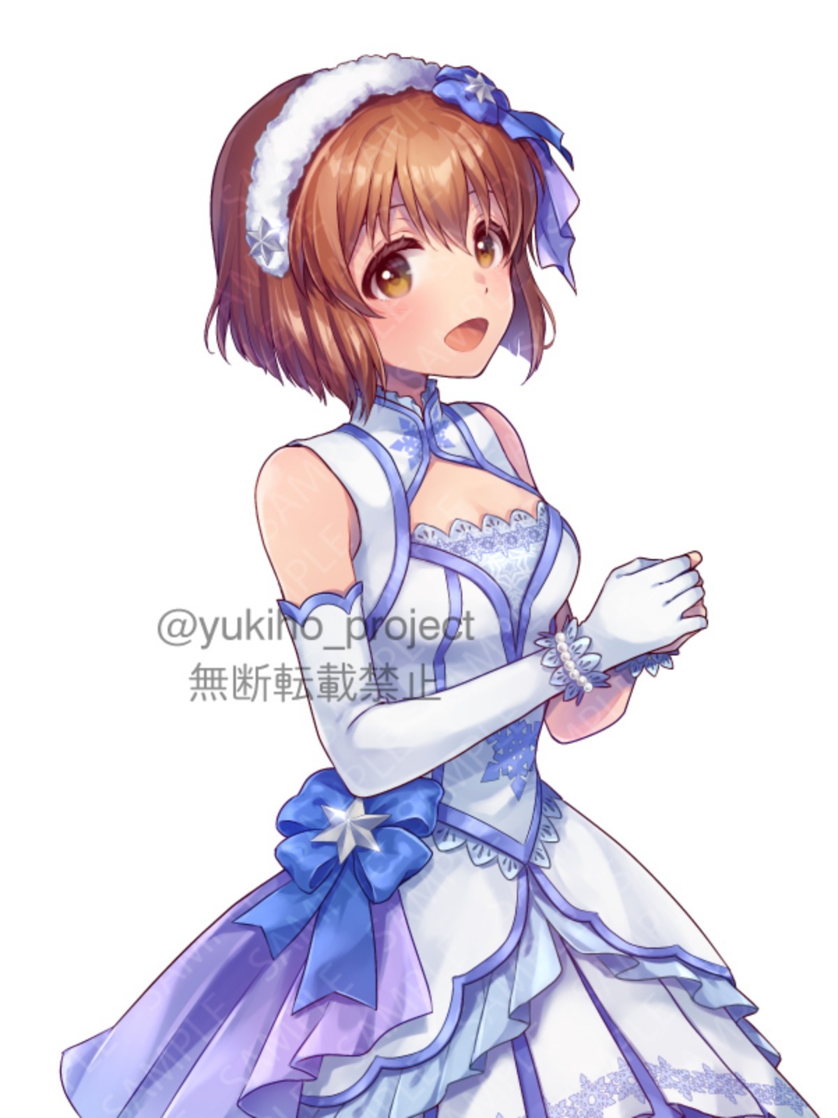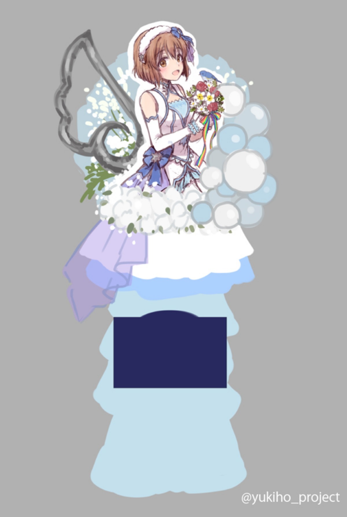 今回のフラスタは衣装[ホワイトスノークリスタル]をまとった雪歩をメインに制作予定です。