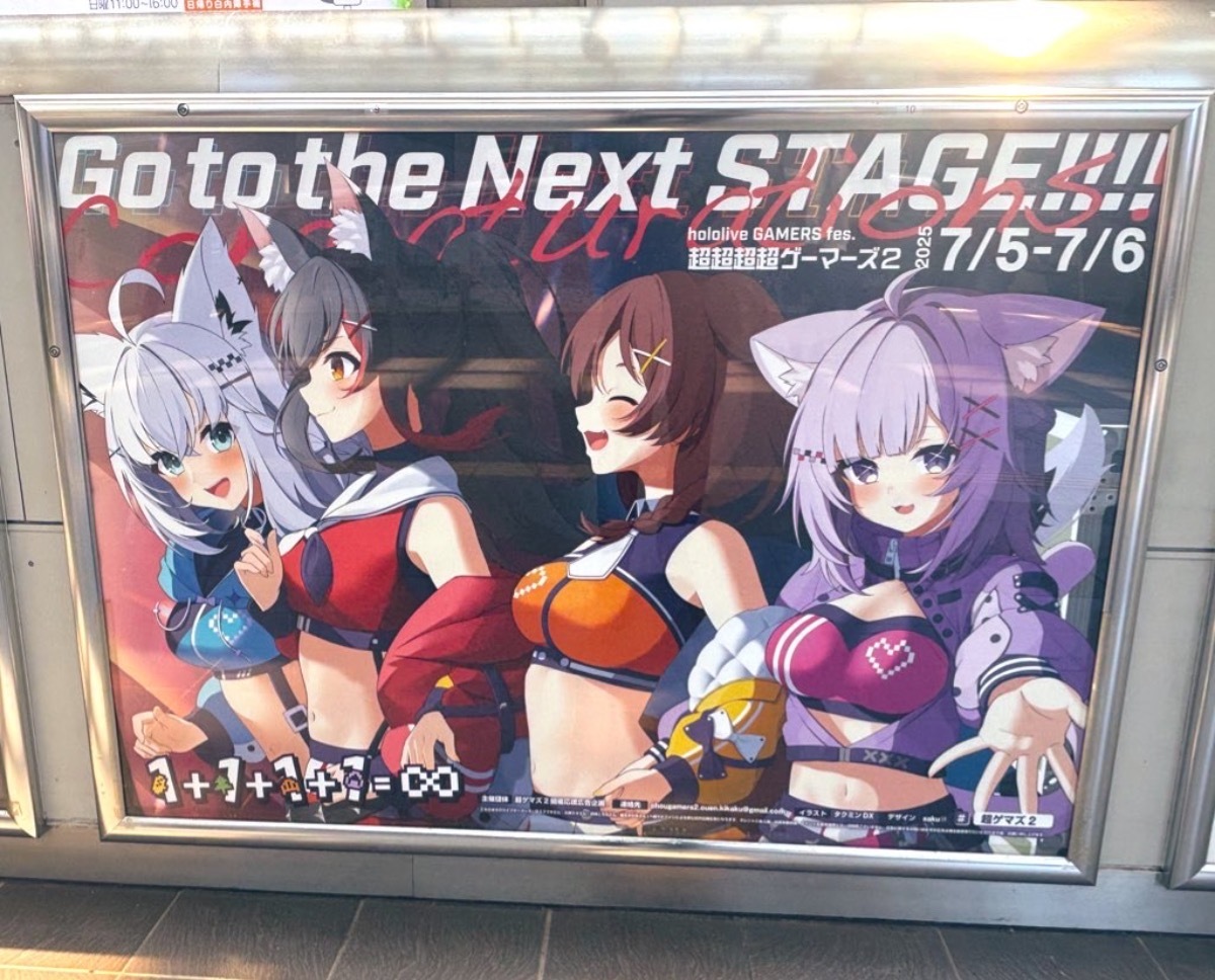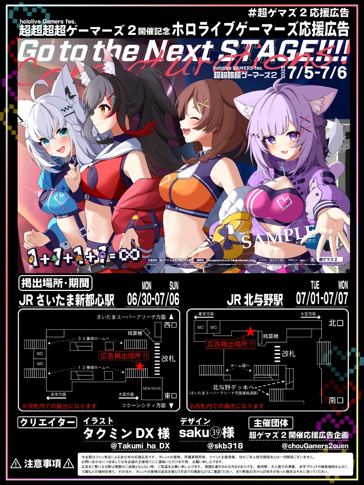 7/5-6の超超超超ゲーマーズ2開催に合わせて、最寄駅のさいたま新都心駅・北与野駅に応援広告を掲出しております(写真はさいたま新都心駅のものです)。