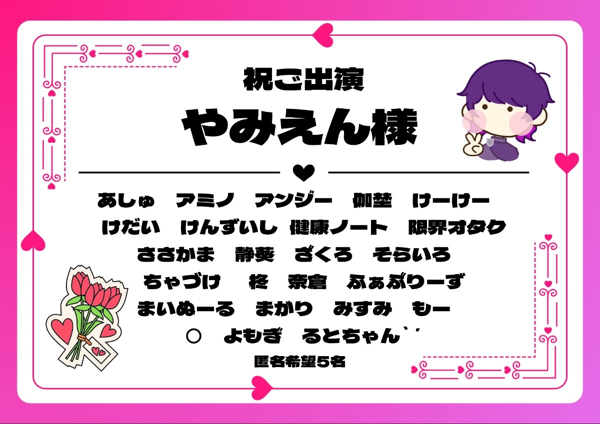 フラスタ企画にご参加いただいた皆さまありがとうございます!期限が短くなり申し訳ございませんが、7/30までに記名パネルに掲載するお名前の確認をお願いしています。