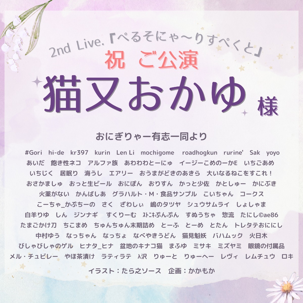 猫又おかゆ2ndライブ「ぺるそにゃ〜りすぺくと」開催記念にフラスタを送りませんか?