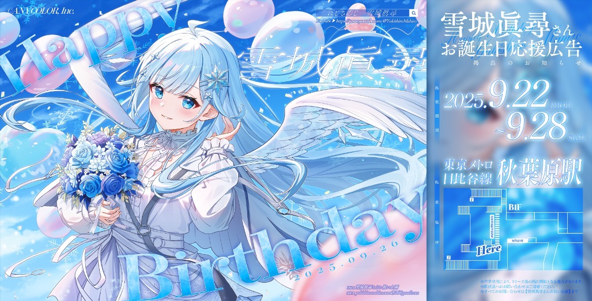 にじさんじの雪城眞尋さんのお誕生日を記念して応援広告を掲出させていただきました!