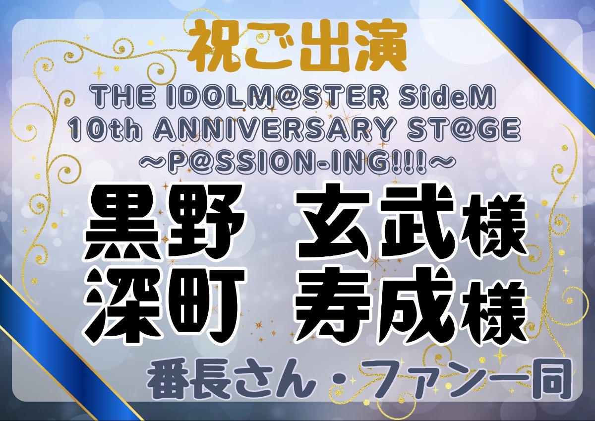 【SideM10th】深町寿成さん&黒野玄武くんにお花を送りませんか?