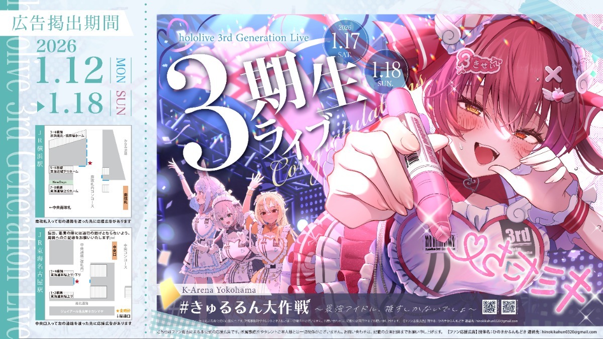 ホロライブ3期生ライブを祝して、本日より応援広告を掲出しました!