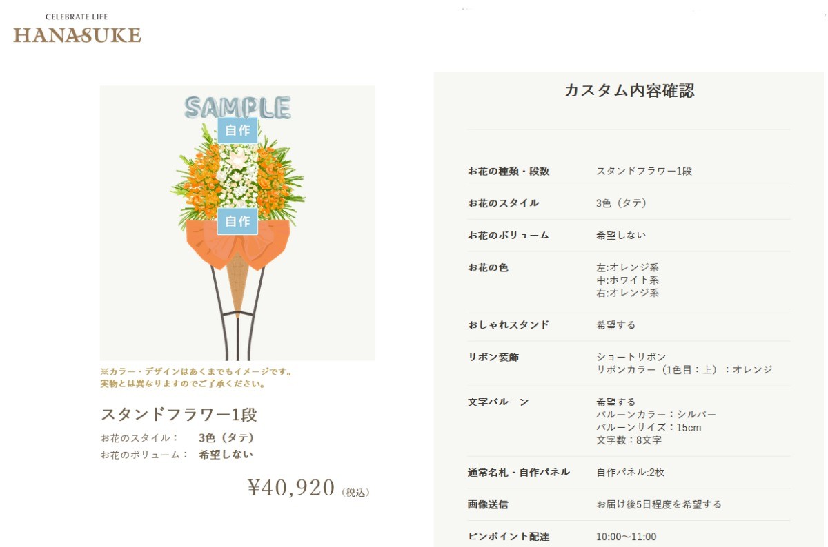 フラワースタンドのデザイン及び金額