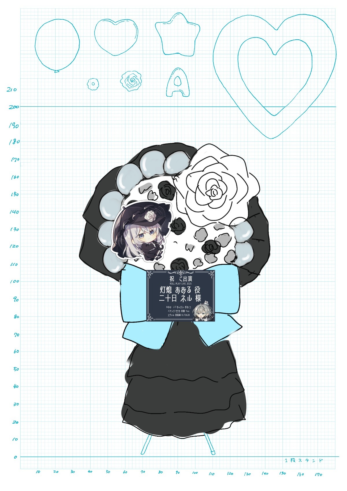 今回使用するイラスト2種類のステッカー+協賛パネルデザインのステッカー(計3種類)をご本人様にお渡し予定です。