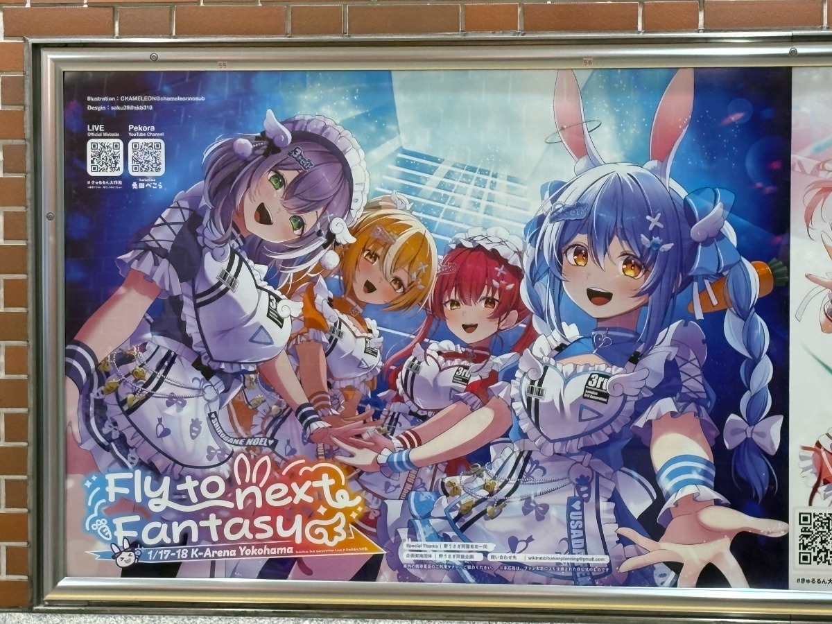横浜駅はライブが開催されるKアリーナ横浜の最寄り駅に当たり、また応援広告もライブ最終日まで掲載されておりますため、現地でぺこらさんを応援される方はぜひお立ち寄りくださいますと幸いです!
