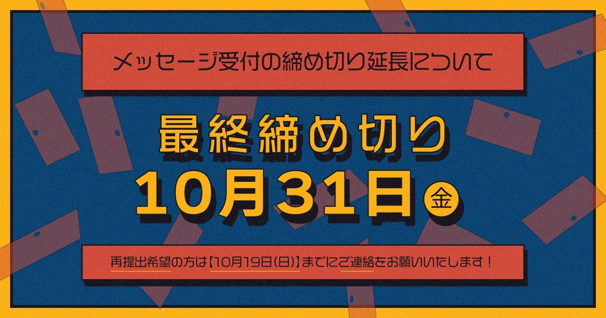 メッセージ受付の締め切り延長について