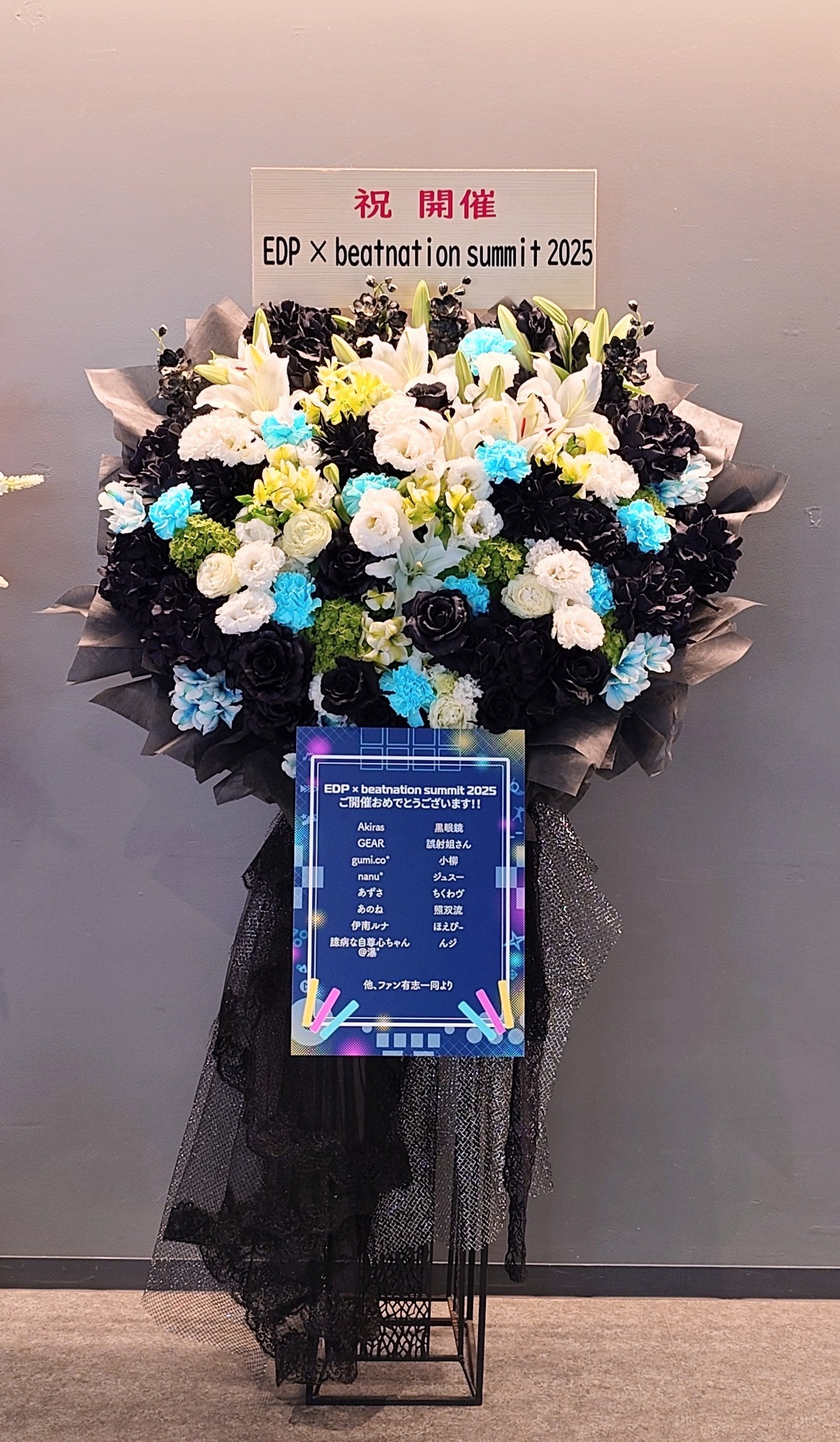 イベントのHPを参考にお花屋さんがデザインしてくださったのですが、かっこよく華やかに仕上がってて最高です!