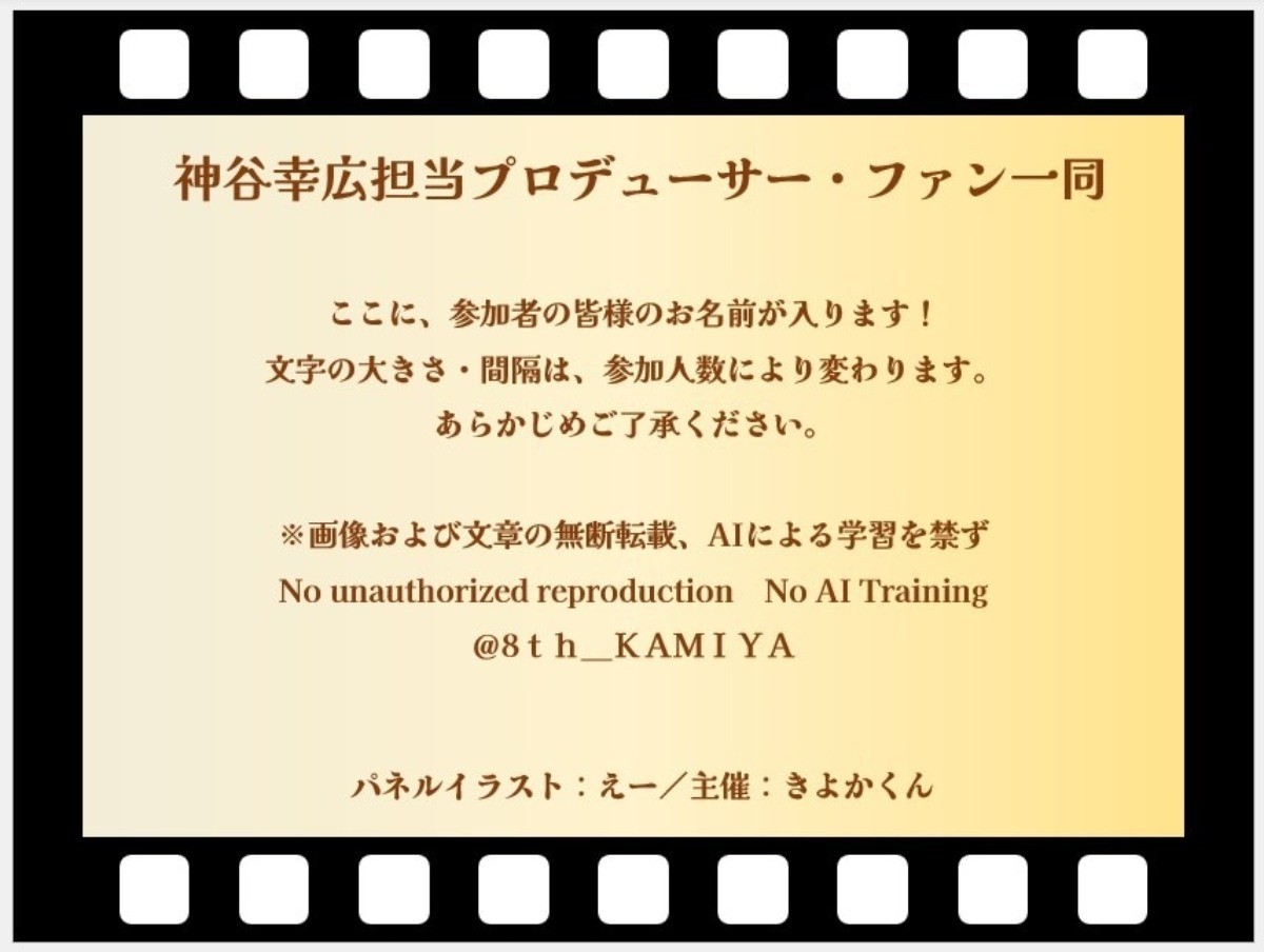 団体アカウント(@8th_KAMIYA)でも告知をいたしますので、ぜひ拡散にご協力いただけますと幸いです。