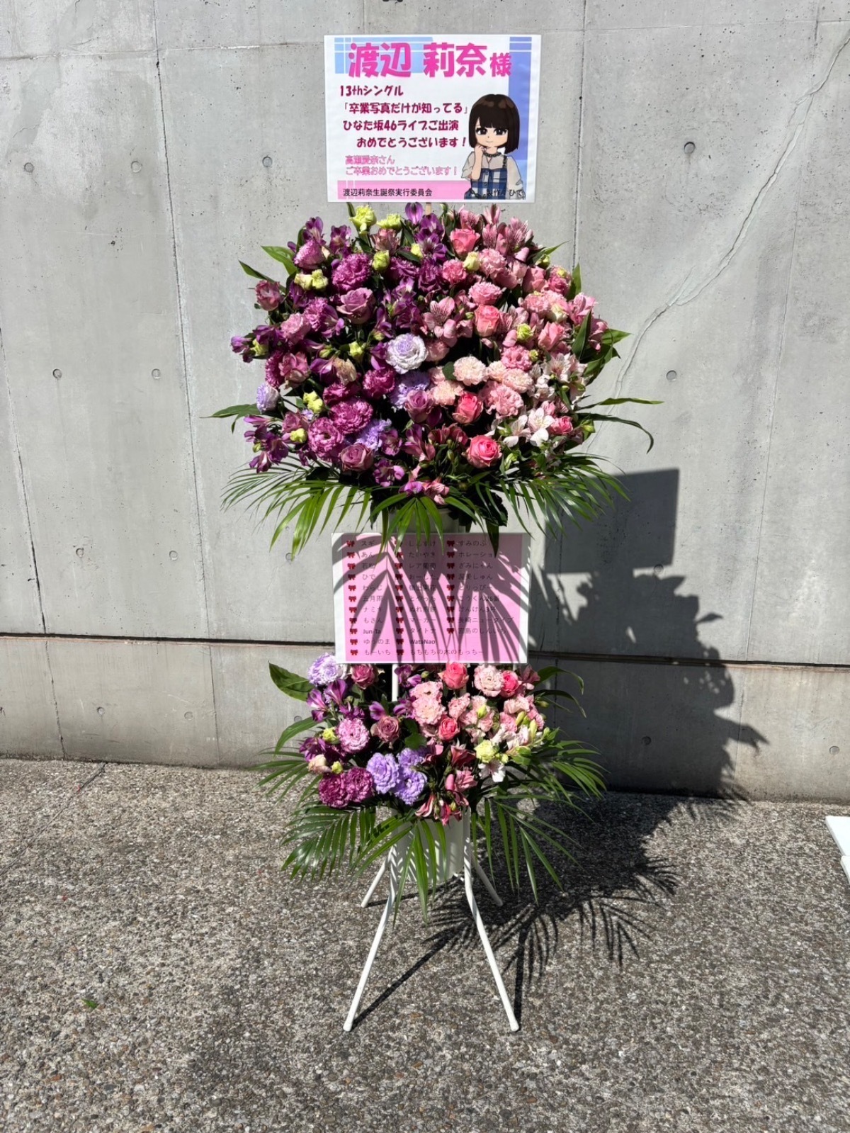 ひなた坂ライブにて渡辺莉奈ちゃんへ、皆様にご協力いただき祝花を贈らせていただきました。