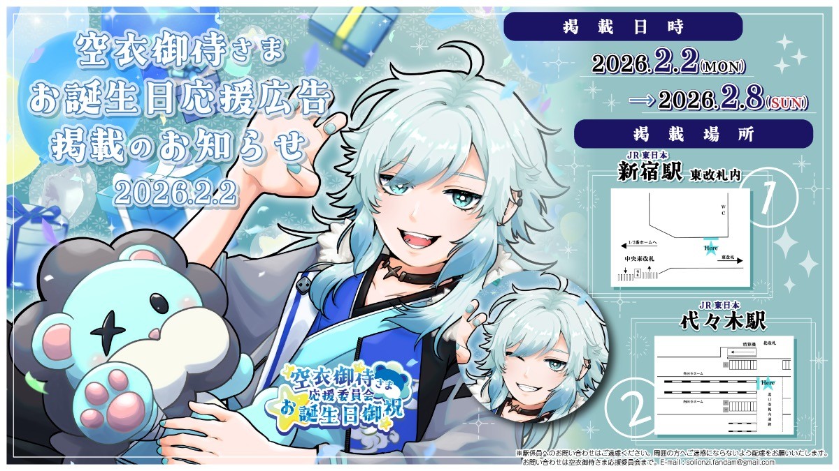 空衣御侍さまのお誕生日を記念して、本日(2/2)より応援広告を掲出いたします🎂