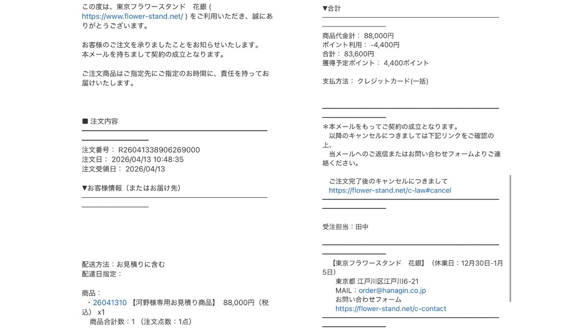 百花V乱でもお願いしました、東京フラワースタンド花銀(https://www.flower-stand.net/?srsltid=AfmBOopGYZCtaYNVhXxQ7ggQVFPPVYeOMrA0K2QUYmD2mU0esL8kEWFc)さんにお任せ致しました。