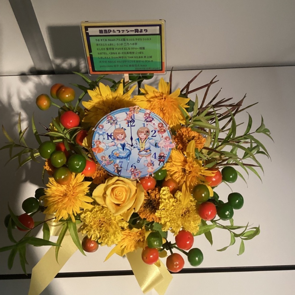 今回、現地でパネルのみの展示に切り替わる可能性があるとの事前通知がありましたので、そのケースに備えてお花屋さんに楽屋花も合わせて用意いただいておりました。
